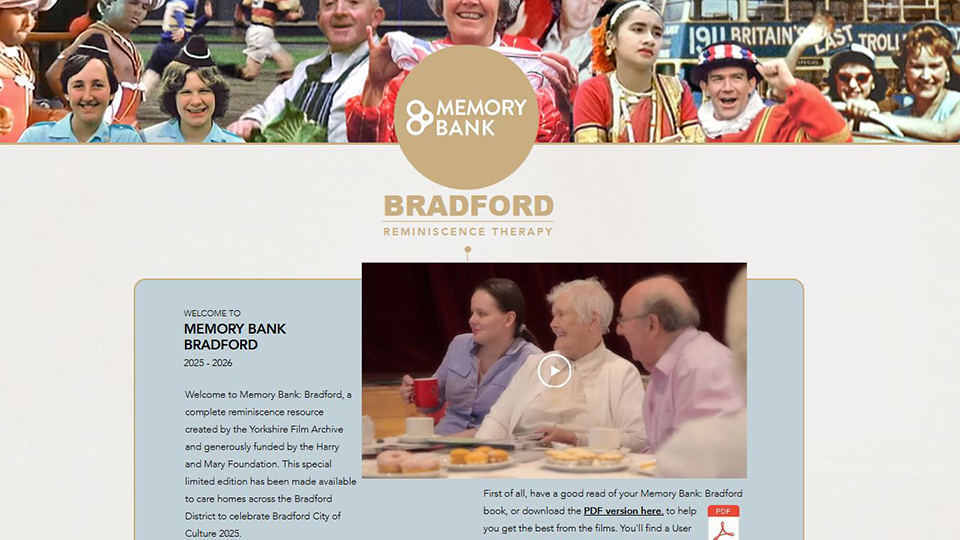 The resource builds on the Archive's original Memory Bank project, delivered on DVD to meet the needs of earlier focus groups. Adapting to technological changes in the care sector, especially those driven by the COVID-19 pandemic, Memory Bank: Bradford now provides a hybrid mix of online and physical resources.